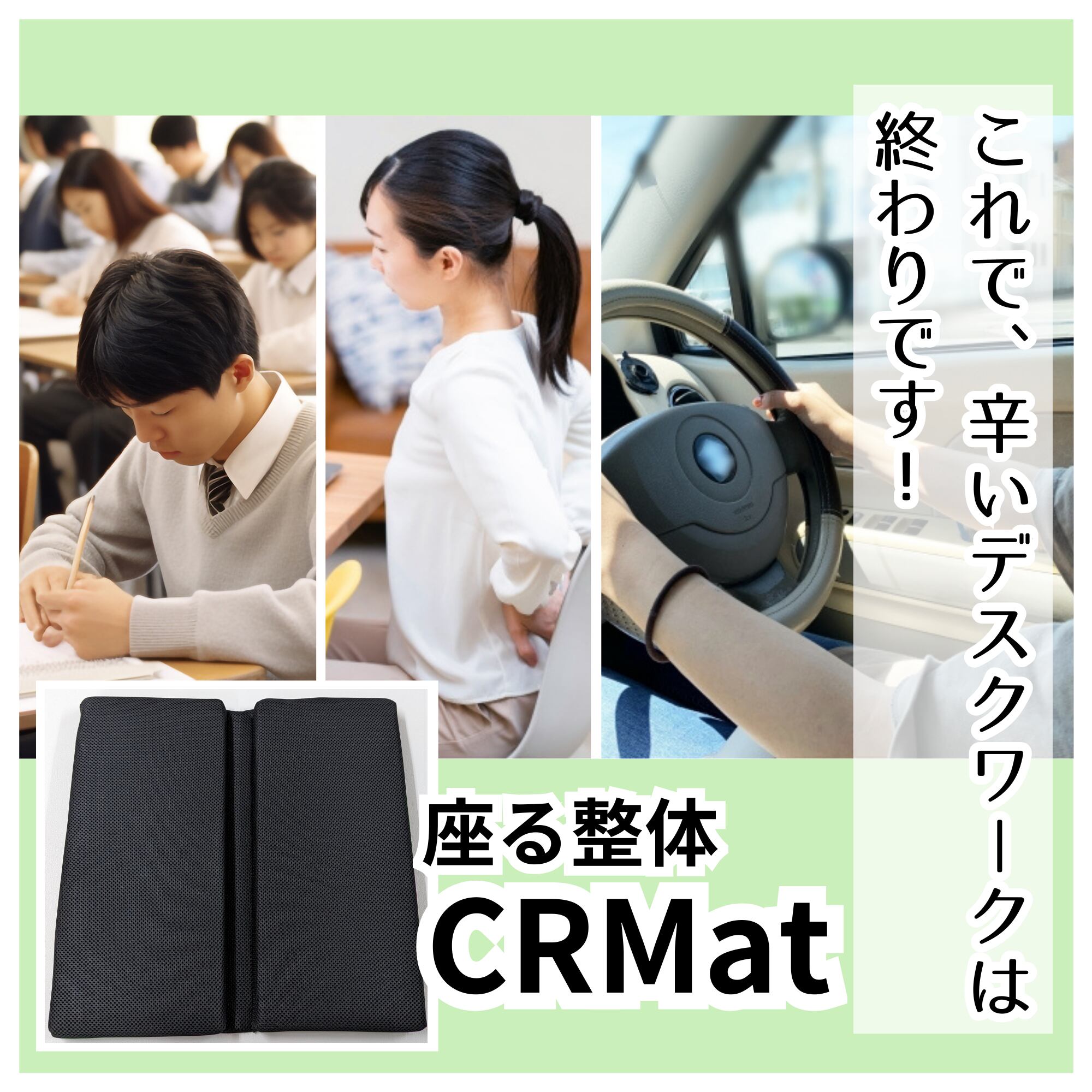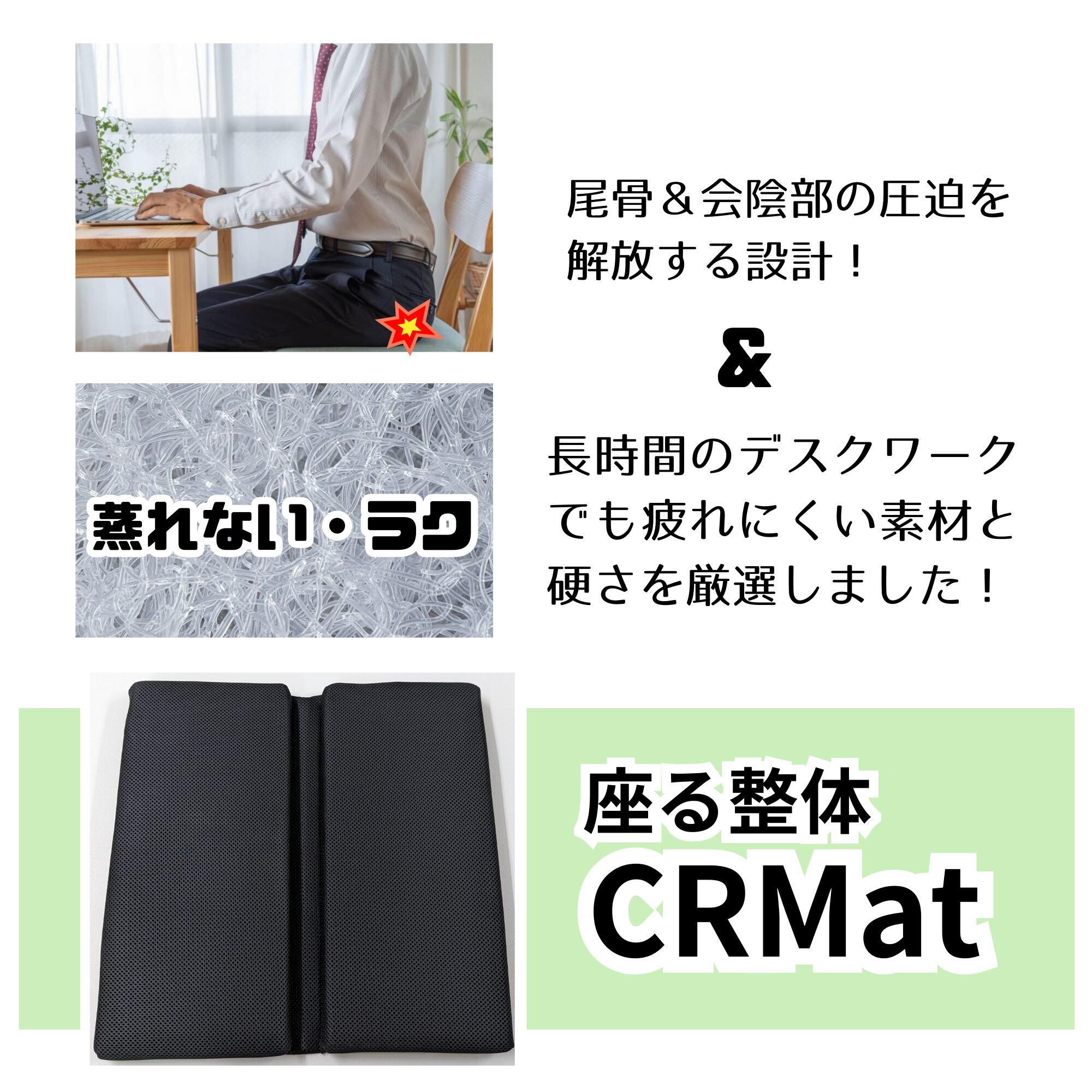 CRMatは、日常生活の中で座り姿勢を見直し、身体の負担を軽減するための強力なツールです。快適さと健康を手に入れましょう!